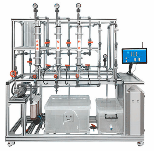 1 、 預(yù)過濾器: 20 英寸 5 μ m 粗濾器,數(shù)量 2 個。 2 、反滲透膜組件采用采用 4040 型 膜 ,膜直徑:φ 100mm ;長度: 1014mm ;脫鹽率: 95% ;最大壓力: 3.16MPa 。 采用不銹鋼壓力容器 。 3 、超 濾膜組件:聚丙烯中孔纖維,孔徑:0.01—0.3 μ m ,孔隙率:50%-55%,截留分子量:5萬,使用溫度:44℃-73℃;最大工作壓力:4Kg/cm 2 , 出水量為 60-600L/h 。 4 、納濾膜組件采用 4040 型 膜,不銹鋼外殼, 進水 pH 值 3.0 — 10 ,最高進水溫度 45-80 ℃。 采用不銹鋼壓力容器 。 5 、 微濾膜組件:塊狀炭 + 工程塑料外殼,出水量250-2500L/H,孔徑0.2μm。 6 、電導率儀測量:反滲透膜進水、出口淡水、出口濃水, 納濾膜 進水、出口淡水、出口濃水的濃度變化。共計 6 臺在線電導率儀,量程 0-1999μS/cm 。 7、 微濾膜出水流量: 管式流量計,測量范圍 6 0- 6 00L/h 。 8 、超濾膜淡水和濃水流量 : 管式流量計,測量范圍 25 - 25 0L/h 。 9 、反滲透膜淡水和濃水流量 : 管式流量計,測量范圍 16-160 L/h 。 1 0 、納濾膜 淡水和濃水流量 : 管式流量計,測量范圍 16-160 L/h 。 11 、 壓力:不銹鋼指針防震壓力表,測量范圍 0-0.6MPa 和 0-1.6MPa 。 12 、不銹鋼多級高壓離心泵:流量范圍 1.0-2.5 m 3 /h ,揚程 40-102m ,功率 0.75KW 。 13 、不銹鋼離心泵:流量范圍 0.5-3.5 m 3 /h ,揚程 16-28m ,功率 0.55KW 。 1 4 、原水槽:容積 80L ,優(yōu)質(zhì) P P 材質(zhì),厚度 8mm 。 1 5 、出水槽:容積 80L ,優(yōu)質(zhì) P P 材質(zhì),厚度 8mm 。 1 6 、管路:透明,壁厚≥2.0mm,透明可視材質(zhì)。 1 7 、壓力開關(guān):0~0.6MPa,低壓保護 , 延時保護 。 1 8 、電壓:380V,總功率: 2.0 kW 。 19 、 正泰電器:接觸器、帶燈開關(guān)、漏電保護空氣開關(guān)。 20 、外形尺寸: 20 00×550×2 0 00mm(長×寬×高) , 外形為可移動式設(shè)計, 帶剎車輪, 高品質(zhì)鋁合金型材框架,無焊接點,安裝拆卸方便,水平調(diào)節(jié)支撐型腳輪 。 21 、工程化標識:包含設(shè)備位號、管路流向箭頭及標識、閥門位號等工程化設(shè)備理念配套,使學生處于安全的實驗操作環(huán)境中,學會工程化管路標識認知,培養(yǎng)學生工程化理念 。 |
