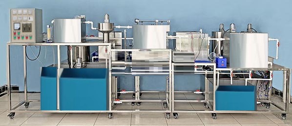 5.304 不銹鋼臺面、拉絲銀雙色板標牌標注主要組成單元,管路性質(zhì)和水流方向標識,便于學生了解設(shè)備。