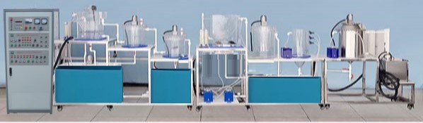 16.304 不銹鋼臺面、拉絲銀雙色板標牌標注主要組成單元,管路性質(zhì)和水流方向標識,便于學生了解設(shè)備。