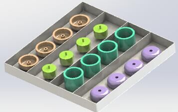 圓柱形外裝配工件 9 個(gè)、圓柱形內(nèi)裝配工件 9 個(gè)、方形碼垛工件 12 個(gè)、焊接 / 打磨工件 10 個(gè) |