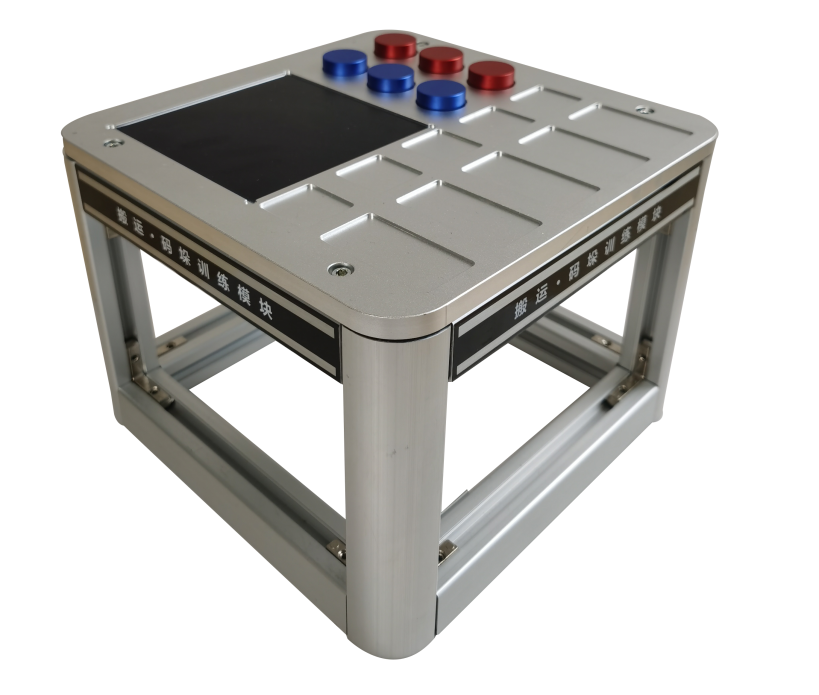 該模塊設(shè)置了物料碼垛區(qū)及搬運固定位置放置區(qū),使用者在碼垛區(qū)可進行不同垛型的碼垛訓(xùn)練,可進行方形、矩形、圓形物料的固定位置搬運訓(xùn)練。