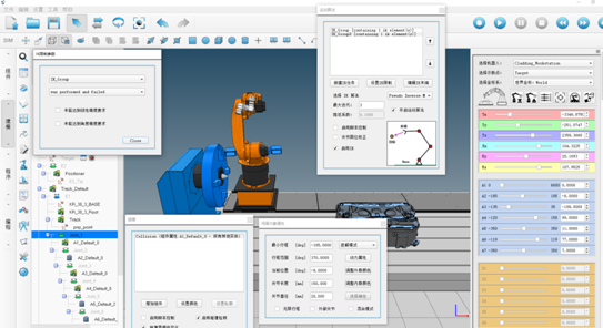 8 )包含豐富的軌跡調(diào)整優(yōu)化工具包,如碰撞檢查、工業(yè)機(jī)器人可達(dá)性、姿態(tài)奇異點、軸超限等;