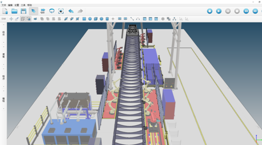 9 )支持多機(jī)器人同步運動仿真,能夠?qū)崿F(xiàn) 5 個及以上機(jī)器人與外部軸的同步運動