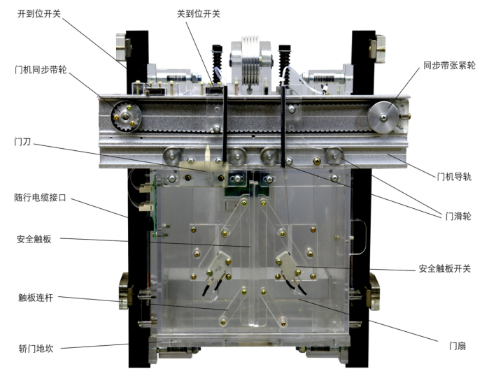 我公司的 DT系列透明電梯是根據(jù)最常見的升降式電梯結構, 采用鋼管焊接一體而成,表面經(jīng)過磷化噴塑處理、具有良好的結構剛性。為了便于教學,電梯主要機構部件均采用透明有機材料制成 (包括:限速器、轎廂、層門及門廳立面、轎門、轎廂、機房底板、導軌支架 …… )為了使電梯運行控制更加精密可靠逼真,設計了與實際電梯比例縮小的鋁合金轎廂對重導軌、及轎門門機導軌、層門導軌。