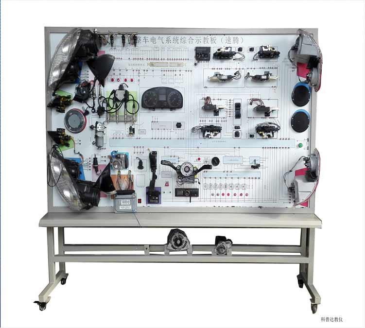 在整車電器基礎(chǔ)上,配備各相關(guān)輔助控制裝置,可如原車一樣實際演示起動、充電、點火、燈光、儀表、雨刮、中控門鎖、防盜、電動窗、音響系統(tǒng)等全套整車電器設(shè)備的工作原理和過程;