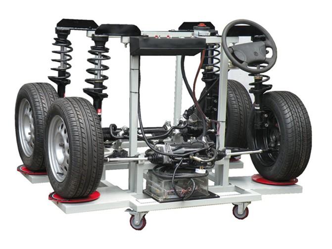 主要組成:前后懸架、 方向機(jī)、輪胎、 助力泵、轉(zhuǎn)向電機(jī)、方向盤(pán)、壓力表、轉(zhuǎn)向刻度盤(pán)、座椅、可移動(dòng)臺(tái)架,配套使用說(shuō)明書(shū)和實(shí)驗(yàn)指導(dǎo)書(shū)等。主要功能: 1 .可模擬汽車(chē)在不同車(chē)速時(shí)四輪轉(zhuǎn)向的工作情況,并配有轉(zhuǎn)交盤(pán)可顯示轉(zhuǎn)向角度的大小,可進(jìn)行動(dòng)力轉(zhuǎn)向和非動(dòng)力轉(zhuǎn)向?qū)嶒?yàn),配合四輪定位儀可做四輪定位實(shí)驗(yàn); 2 .通過(guò)拆裝實(shí)習(xí),充分學(xué)習(xí)轉(zhuǎn)向系的結(jié)構(gòu)原理,裝配技巧,掌握轉(zhuǎn)向系統(tǒng)的調(diào)整內(nèi)容、方法及組裝順序;同時(shí)可方便地檢測(cè)裝配的效果和質(zhì)量; 3 .演示原車(chē)轉(zhuǎn)向系統(tǒng)的工作過(guò)程及轉(zhuǎn)向系統(tǒng)基本結(jié)構(gòu)組成和工作原理; 4 .可進(jìn)行四輪定位檢測(cè)與調(diào)整,四輪定位三要素的調(diào)整和作用。制作工藝: 1 、帶鎖定的萬(wàn)向腳輪移動(dòng)裝置,移動(dòng)自如,便于教學(xué);
