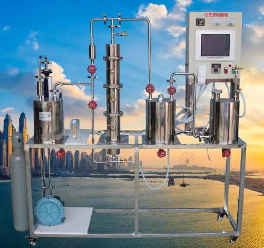 本實驗裝置采用有機玻璃吸附塔,以活性碳為吸附劑,通過模擬發(fā)生的有機物氣體或 NO 氣體進行吸附試驗,得到吸附凈化效率、不同空塔氣速下穿透曲線和保護作用時間等數(shù)據(jù)。
