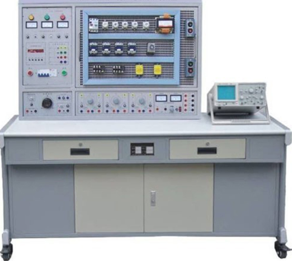 四、實訓操作桌 :鐵質(zhì)雙層亞光密紋噴塑,桌面為防火、防水、耐磨高密度板,設有抽屜和元件儲存柜,結(jié)構(gòu)堅固、造型美觀大方。