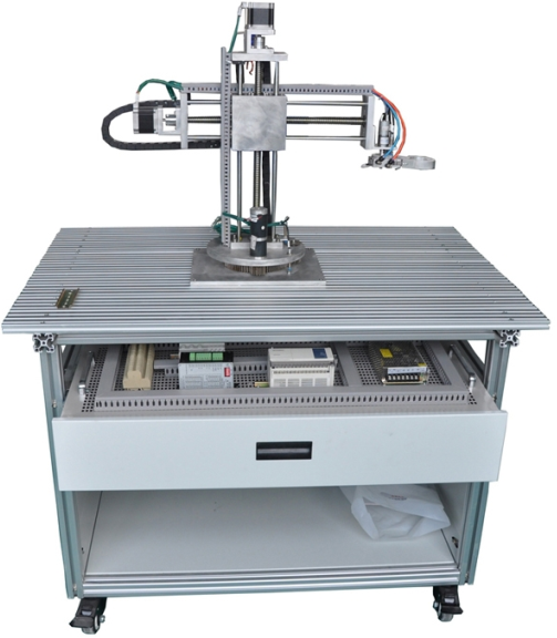 1.機(jī)械部件為可拆裝式模塊化結(jié)構(gòu),由底板(由工業(yè)組合型鋁型材組成)、旋轉(zhuǎn)底座(全鋁結(jié)構(gòu))、羅盤(pán)(全鋁結(jié)構(gòu))、齒輪傳動(dòng)部件、滾珠絲杠、光杠、異型鋁材、不銹鋼網(wǎng)孔板及按鈕角板等部分組成;