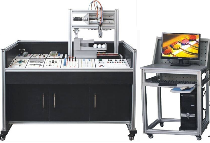 單片機(jī)技術(shù)應(yīng)用實(shí)訓(xùn)考核裝置,單片機(jī)功能控制實(shí)訓(xùn)考核平臺(tái)學(xué)生通過(guò)在該實(shí)訓(xùn)室訓(xùn)練,了解CPU硬件結(jié)構(gòu)特點(diǎn),熟練掌握單片機(jī)的編程設(shè)計(jì)方法,培養(yǎng)學(xué)生應(yīng)用單片機(jī)的開發(fā)設(shè)計(jì)能力。采用烤漆鋼板制作的臺(tái)式結(jié)構(gòu)。單片機(jī)實(shí)訓(xùn)臺(tái)的抽屜柜用于存放實(shí)訓(xùn)模塊,抽屜柜與臺(tái)面之間布置實(shí)訓(xùn)模塊安裝支架,最上一層是工作臺(tái)臺(tái)面。用于技能競(jìng)賽時(shí)在臺(tái)面上放置設(shè)備安裝底板,在底板上安裝試題擬定的單片機(jī)控制裝置需要的模塊,連接控制電路,編寫的控制程序輸入單片機(jī)后,按下運(yùn)行指令開關(guān),單片機(jī)控制裝置就按程序運(yùn)行。放置在單片機(jī)實(shí)訓(xùn)室中,這就是一張實(shí)訓(xùn)臺(tái)。當(dāng)講解理論或?qū)嵱?xùn)項(xiàng)目中的相關(guān)知識(shí)時(shí),可以當(dāng)做課桌;當(dāng)需要進(jìn)行實(shí)際操作時(shí),將臺(tái)面打開,就露出放置在安裝支架上的模塊,在需要的實(shí)訓(xùn)模塊間按實(shí)訓(xùn)要求連接電路,編寫控制程序,就可以按照設(shè)計(jì)的實(shí)訓(xùn)項(xiàng)目進(jìn)行單片機(jī)技術(shù)的教學(xué)了,同時(shí)還能完成智能物料搬運(yùn)裝置的提升實(shí)訓(xùn)。