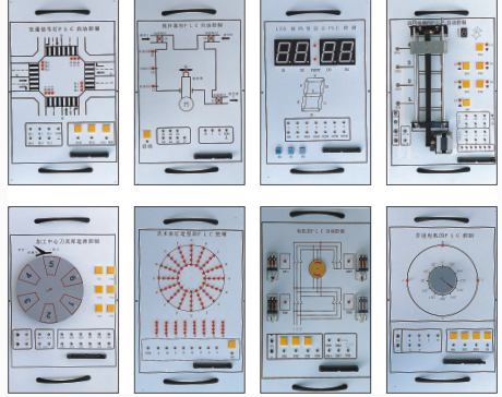 演示裝置上對(duì)PLC的輸入輸出均采用24V電源,5V電源供執(zhí)行機(jī)構(gòu)中的外圍使用,每套演示裝置主要由十七塊實(shí)驗(yàn)掛箱組成,它們的型號(hào)分別為: