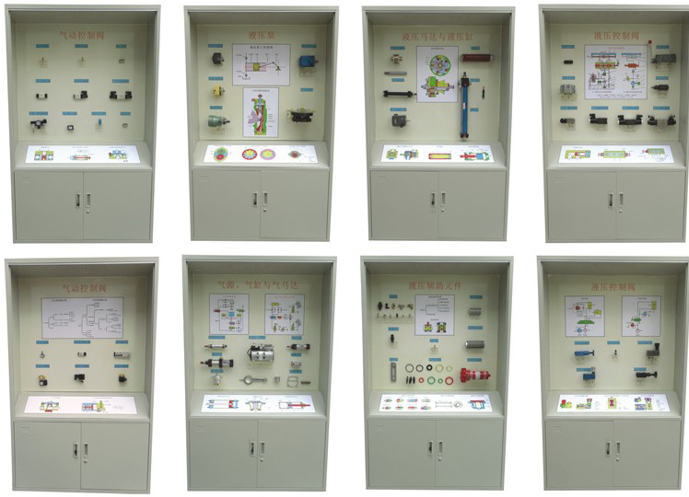 采用實(shí)物或模型以及必要的圖文資料展示常見液壓、氣動(dòng)元件的基本類型與基本結(jié)構(gòu)。