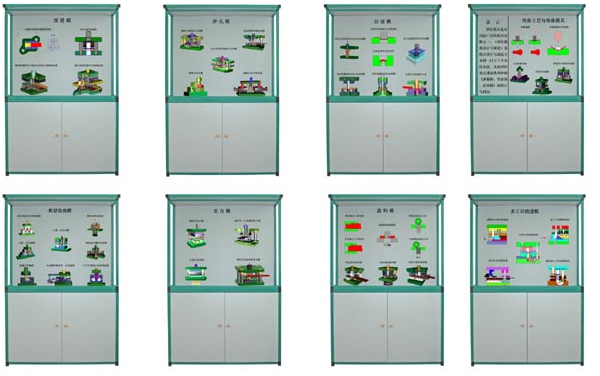 《沖壓模具設(shè)計與制造》陳列柜各柜內(nèi)容如下: