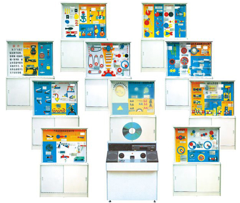 機械 基礎陳列柜是根據大中專院校、職業(yè)學校的教學大綱設計的機械陳列柜,《機械基礎》電化教學設備。總共 10 個柜及 1 個控制臺,用 CD 光盤解說遙控控制,聲控同步進行演示機械模型。通過演示可加強對機械專業(yè)學生的理論學習、使用范圍增強認識,加深理解,是機械專業(yè)系不可缺少的理想教具設備。