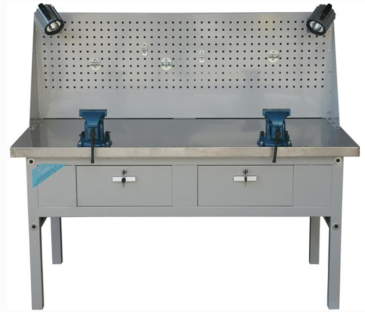 1 、 jgZQG-2 型鉗工桌采用標準的組合式拆裝結構、構件互換一致性好。具有單面二工位、二個大容積的暗鎖抽屜、可調(diào)重型墊腳。以利于運輸、安裝、存儲放置、適應于各種不同實訓場地。