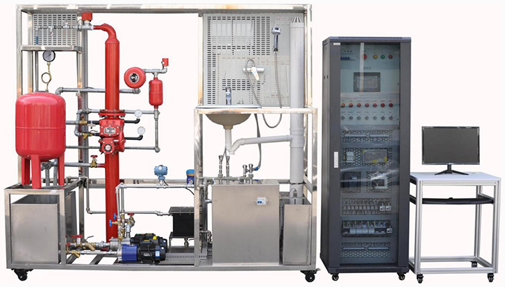 消防給水系統(tǒng)主要有給水箱、噴淋泵、穩(wěn)壓罐、濕式報(bào)警閥、壓力開(kāi)關(guān)、水流指示器、消防給水管道、閉式噴淋頭等組成。管路采用鍍鋅管進(jìn)行設(shè)計(jì),可進(jìn)行鍍鋅管的切割、套絲、安裝和通水試驗(yàn)操作,通過(guò)控制系統(tǒng)可實(shí)現(xiàn)噴淋滅火功能。