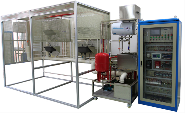 7.生活給水系統(tǒng):主要有給水箱、給水泵、給水管道、壓力變送器、脈沖水表、水龍頭和淋浴頭等組成。管路采用不銹鋼復(fù)合管進(jìn)行設(shè)計(jì),可進(jìn)行不銹鋼復(fù)合管的切割、安裝和通水試驗(yàn)操作,通過(guò)控制系統(tǒng)可實(shí)現(xiàn)生活給水系統(tǒng)的變頻恒壓供水功能,實(shí)現(xiàn)單泵變頻控制或雙泵切換控制等功能;通過(guò)脈沖式水表可以完成用水量的計(jì)量。