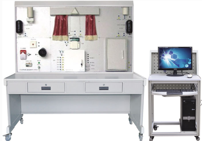 本系統(tǒng)全部元器件均采用實物,整個實訓裝置主要由幕簾探測器、紅外探測器、報警主機、門磁、緊急按鈕、聲光報警器、交換機、警號、 Modem 、光束對射控制測器、擴展模塊系統(tǒng)等組成。
