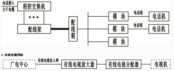 綜合布線系統(tǒng)主要由數(shù)據(jù)網(wǎng)絡(luò)、語音網(wǎng)絡(luò)、有線電視網(wǎng)絡(luò)三大部分組成。其中數(shù)據(jù)網(wǎng)絡(luò)為計算機(jī)網(wǎng)絡(luò)系統(tǒng),語音網(wǎng)絡(luò)為電話網(wǎng)絡(luò)系統(tǒng)。