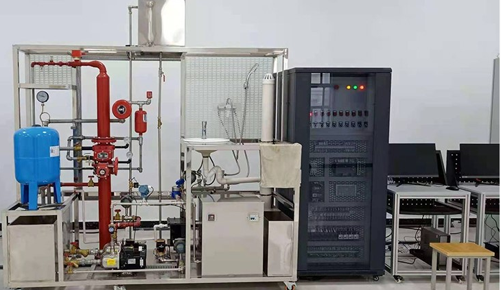 消防給水系統(tǒng)主要有給水箱、噴淋泵、穩(wěn)壓罐、濕式報(bào)警閥、壓力開關(guān)、水流指示器、消防給水管道、閉式噴淋頭等組成。管路采用鍍鋅管進(jìn)行設(shè)計(jì),可進(jìn)行鍍鋅管的切割、套絲、安裝和通水試驗(yàn)操作,通過控制系統(tǒng)可實(shí)現(xiàn)噴淋滅火功能。