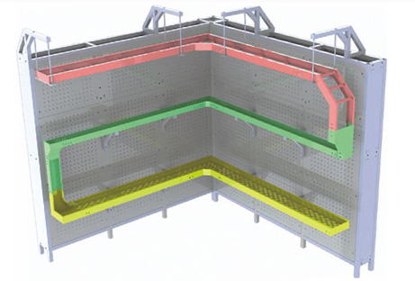 單層模擬墻橋架展示系統(tǒng)采用仿真管槽安裝環(huán)境模型用 200x60 梯級橋架 3 米、 100x50 槽式橋架 3 米、 100x50 托盤式 3 米分上中下三層進(jìn)行安裝展示,配套有水平彎、三通、異徑接頭、堵頭等配件